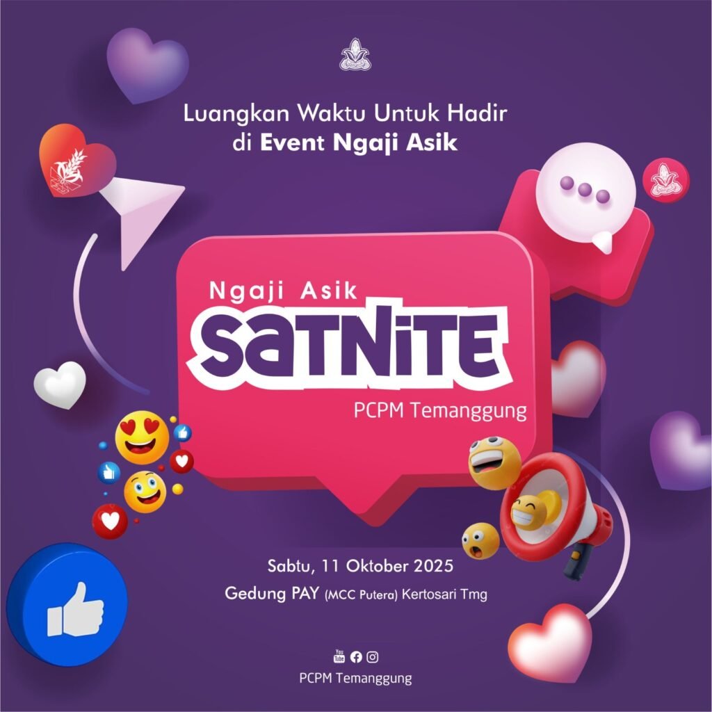 Temanggung, 11 Oktober 2025 – Pimpinan Cabang Pemuda Muhammadiyah (PCPM) Temanggung kembali menggelar acara rutin kajian bulanan yang diberi nama Satnite ke-7. Kegiatan ini berlangsung di MCCLKSA Muhammadiyah Putra Temanggung dan dihadiri oleh sekitar 70 pemuda-pemudi yang antusias. Pada kesempatan kali ini, Satnite mengangkat tema yang sangat relevan dengan perkembangan zaman, yaitu “Antara Aku, Kau, […]