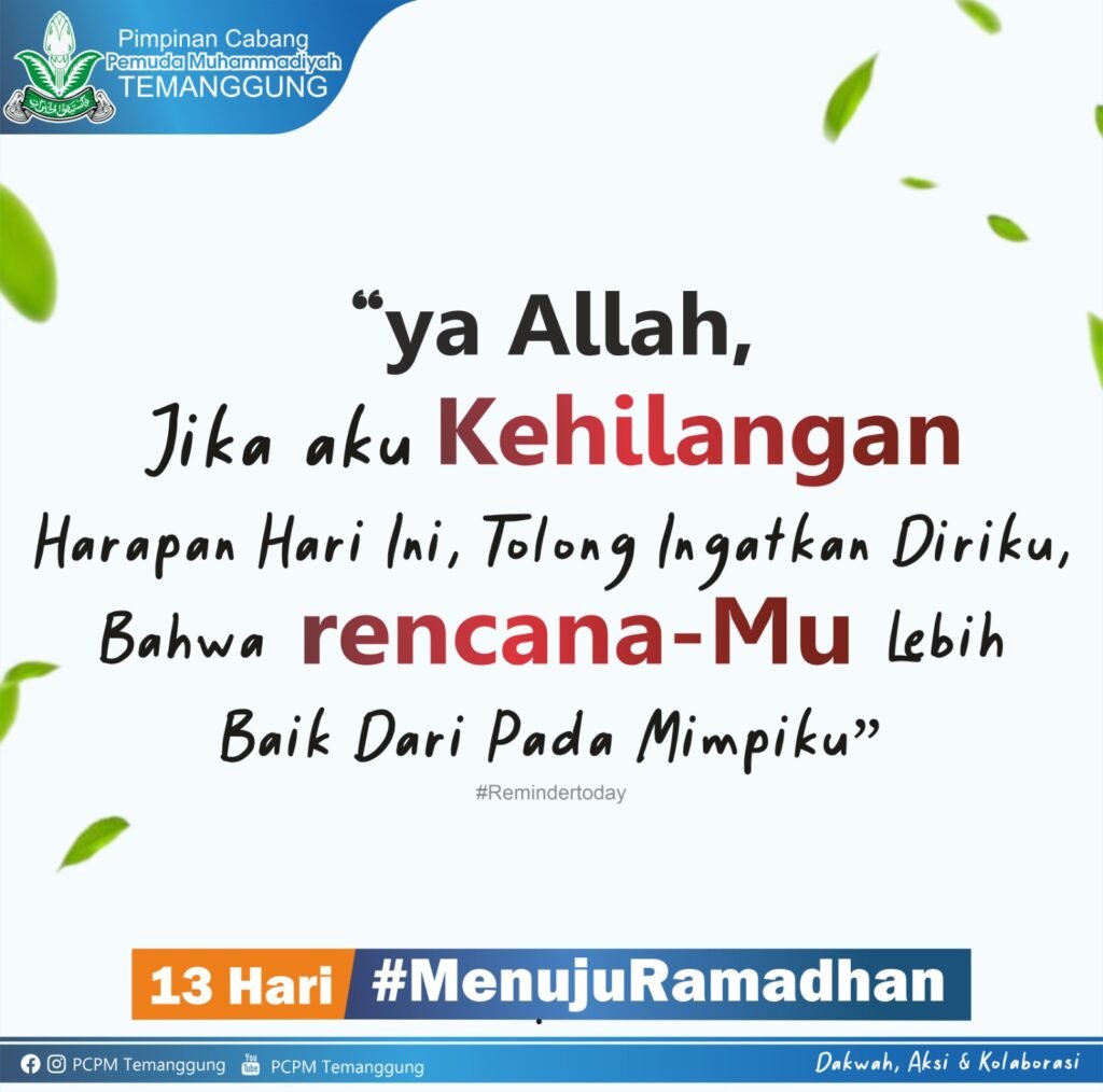 Pesan ini menjadi semakin dalam maknanya karena disampaikan dalam rangkaian #MenujuRamadhan — 13 Hari lagi. Menjelang bulan suci, ini adalah waktu yang tepat untuk membersihkan hati dari kekecewaan, kemarahan, dan rasa putus asa.