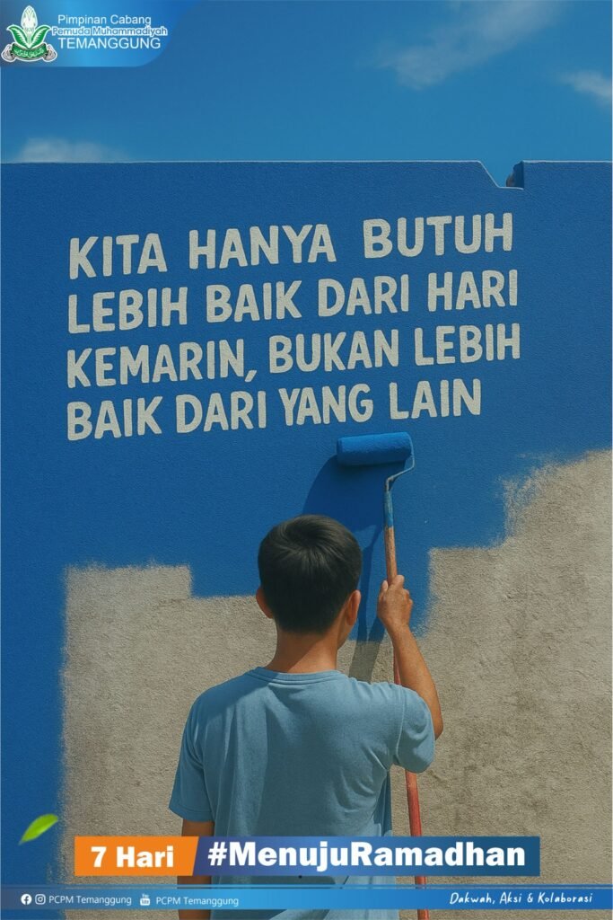 Ramadhan semakin dekat. Bulan penuh ampunan, keberkahan, dan perubahan itu tinggal menghitung hari. Dalam momentum 7 Hari #MenujuRamadhan, Pimpinan Cabang Pemuda Muhammadiyah Temanggung mengajak kita semua untuk merenung dan mempersiapkan diri dengan satu prinsip sederhana namun mendalam: