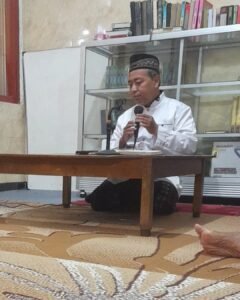 Suasana hangat dan khusyuk terasa di ruang kajian. Jamaah dengan penuh perhatian menyimak penjelasan ustaz, sementara di luar, hujan masih turun membasahi bumi — seolah menjadi saksi kesungguhan para penuntut ilmu yang tetap hadir demi mendapatkan keberkahan malam Jumat Pon.